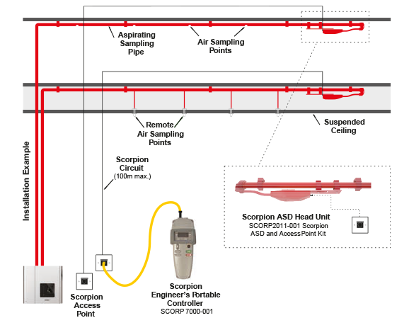 These systems can be adjusted so that they can be used at a normal sensitivity level in warehouses or industrial areas where it would be difficult to install and maintain conventional smoke detectors. The tubing is installed throughout the protected area and the detector is fitted where it is accessable for servicing. The pipework once installed does not usually need to be touched.