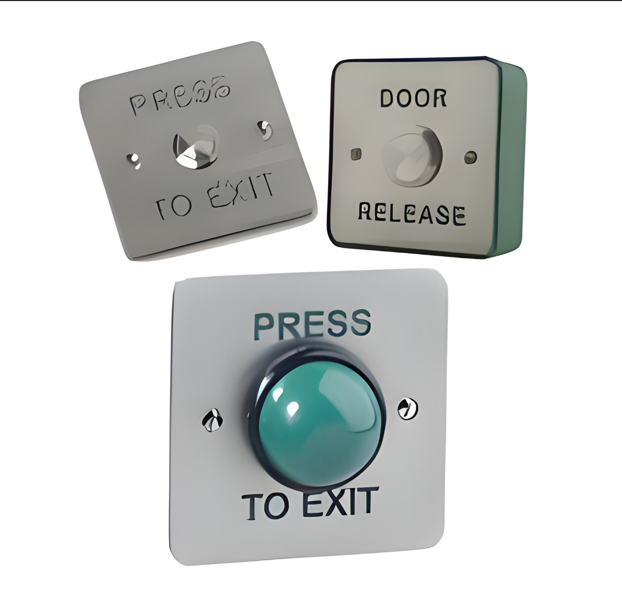 In a more basic system where the need for logging people out of the building is not required The Push to exit button or PTE is used to egress the building from the secure side. They can also be fitted in office receptions for example to enable staff to release the door to let visitors out.