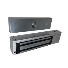 The electromagnetic lock or Maglock consists of a metal plate fitted to the door and an electro magnetic armature. These locks are very strong and can be typically fitted with 300‐1200 lb breaking strain more often the door or its casing would break before the lock does. They are used in more secure areas or areas with frequent traffic as there are less mechanical moving parts than the traditional strike lock above.