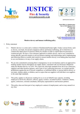 Justice Fire and Security's Company Policies demonstrate our commitment to - Quality Management, Local Environmental issues, Equal opportunities and the Health and Safety of our Staff, Customers and the General Public.